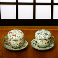 국화무늬 2인 다기잔세트