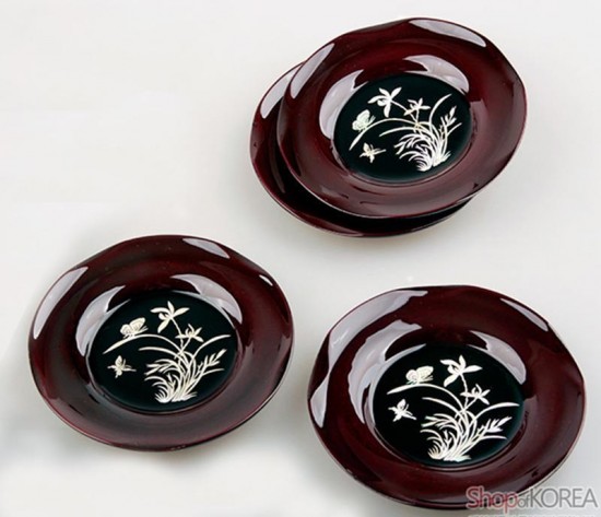 난초의 무늬가 정교하게 장식된 고급 자개 컵받침입니다.