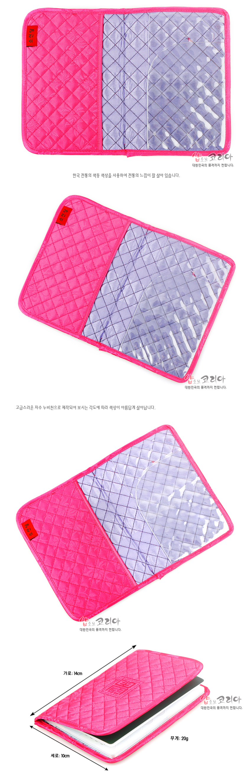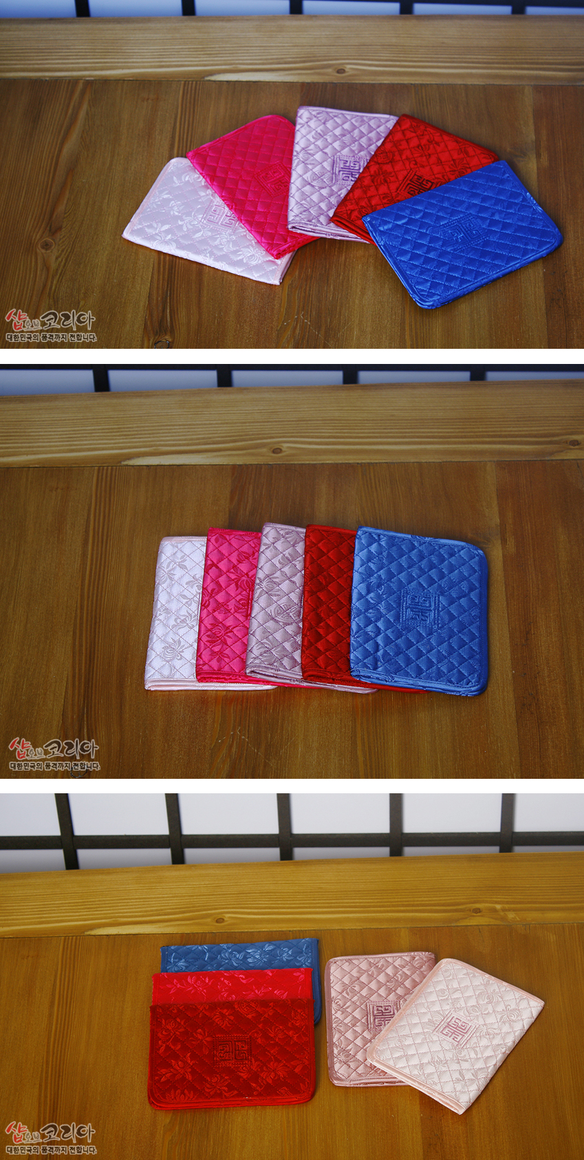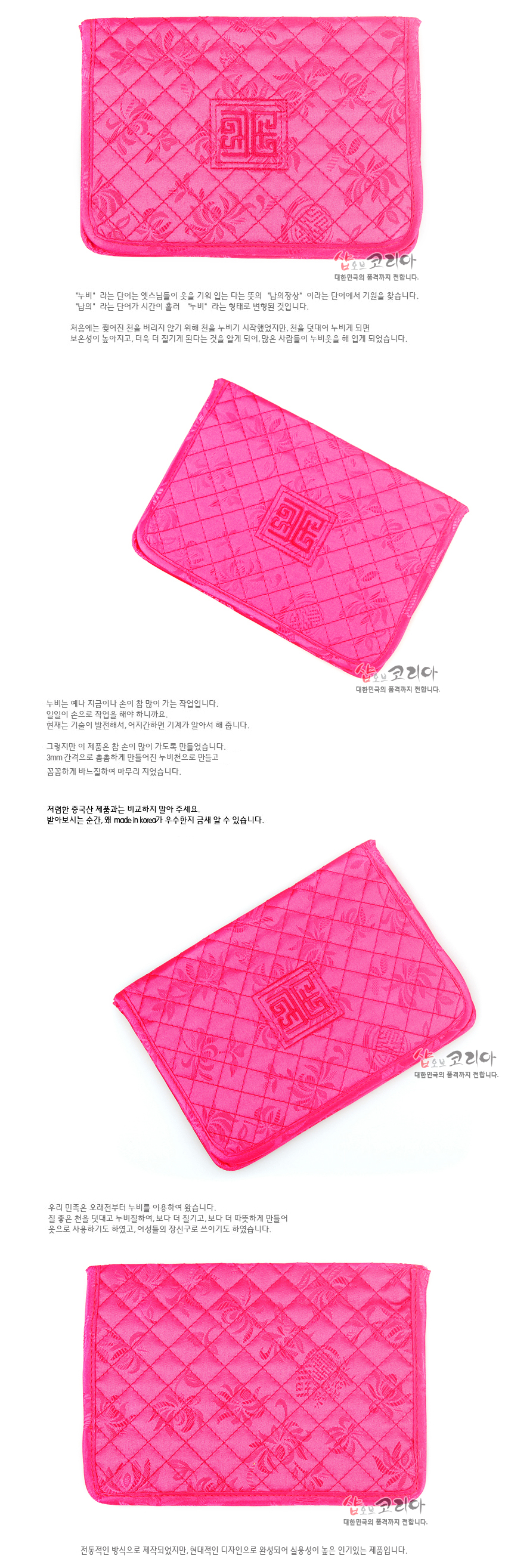예쁜 고급 누비 천위에 전통적인 색상으로 꼼꼼하게 바느질하여 제작하였습니다.