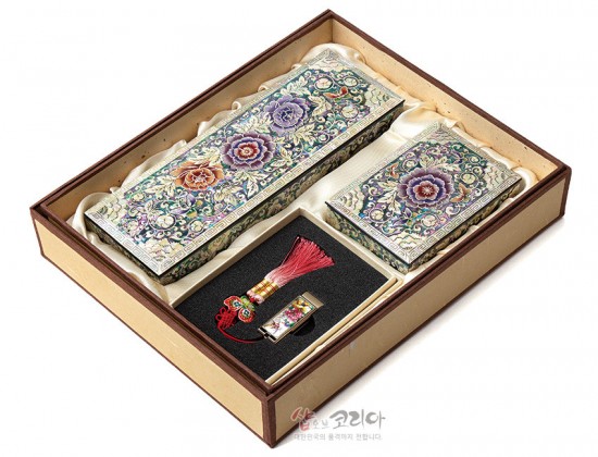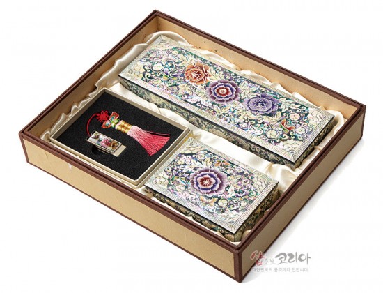 자개필함세트-나전으로 핀 모란(필함,명함함,usb32G)