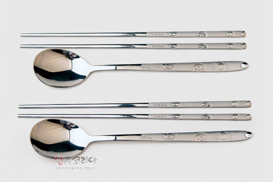 이러한 의미를 담아 수저와 젓가락 손잡이 부분에 정교하게 새겨진 엽전 문양은 보는 이로 하여금 한국 전통문화에 대한 깊은 인상을 심어줍니다.
