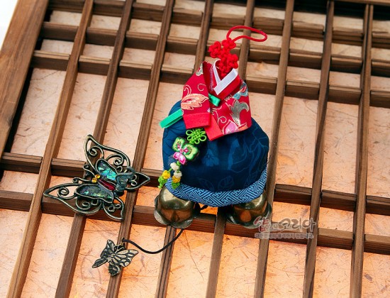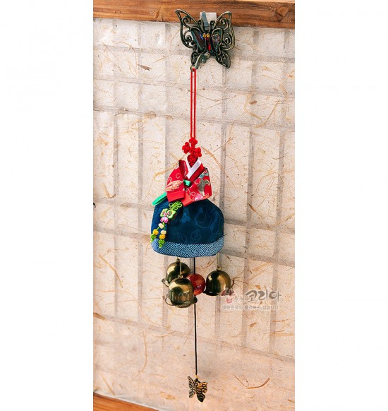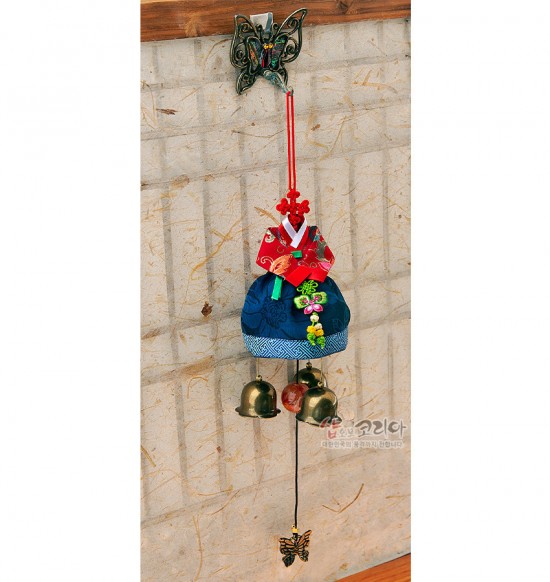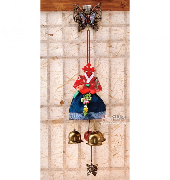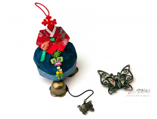 총 길이: 42cm 상단 나비장식: 6.5 x 6cm 한복(매듭): 13cm 하단 종(치마): 23cm