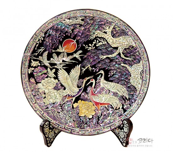 천년의 세월을 이어온 한국 전통 나전칠기 공예 기법으로 제작된 고급 장식 쟁반입니다.
