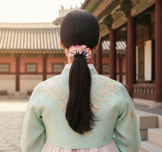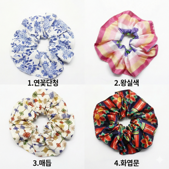 전통 문양을 현대적인 생활 소품에 담아낸 곱창형 헤어밴드입니다.