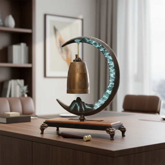 초승달의 우아한 라인이 에밀레종의 중후한 실루엣을 부드럽게 감싸 안아, 시각적인 안정감과 조형미를 극대화했습니다.